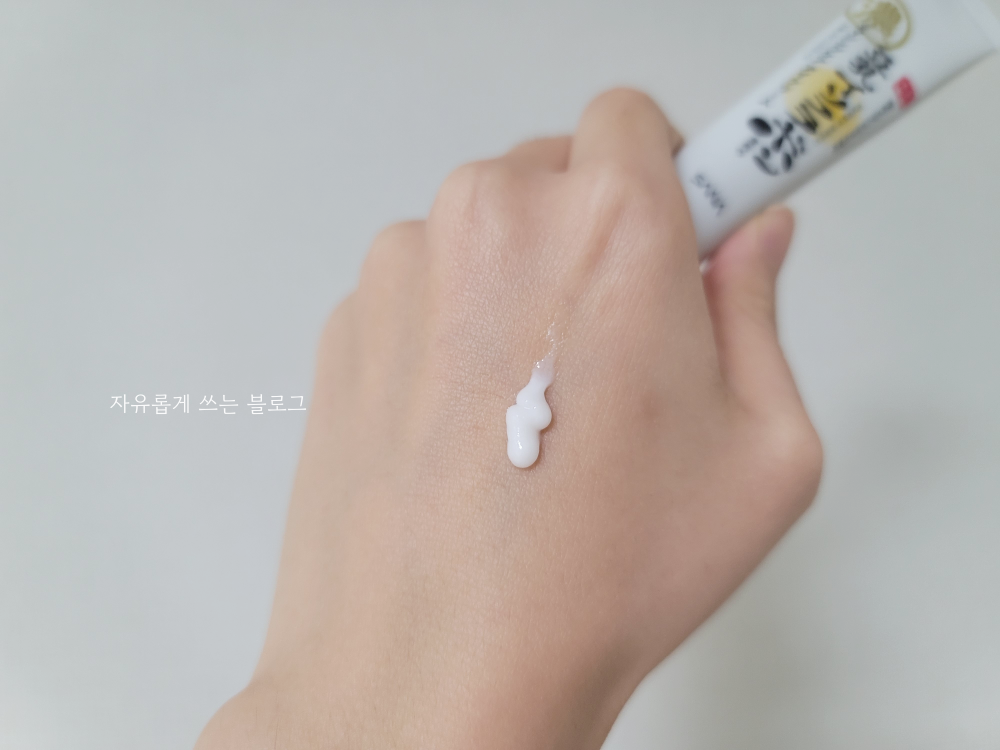 살짝 되직한 제형이라 처음 발랐을 때는 약간 무겁게 느껴지기도 했는데요. 바르면서 금방 녹아들어 피부에 흡수되더라고요.