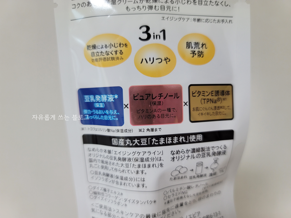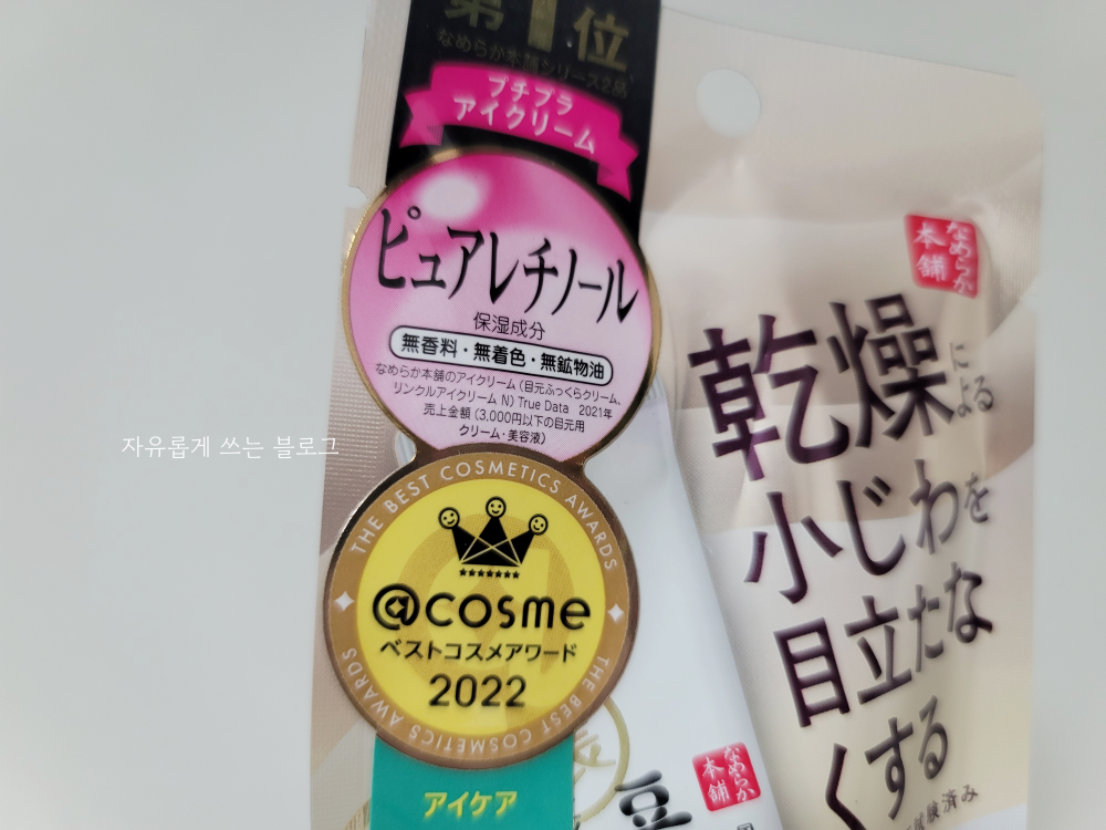 저도 요즘 부쩍 눈가에 주름이 생기는 것 같아 한번 구매해 보았답니다. @cosme 베스트 코스메 어워드에서 수상한 제품이도 하고 일본 내에서도 인기가 많은 상품이라고 해요.