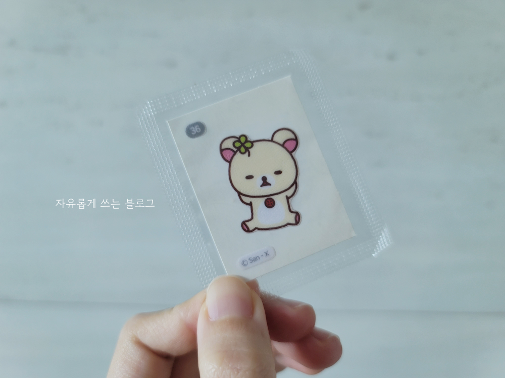 뚜껑을 열어보니 띠부씰이 들어 있었는데요. 저는 36번 코리락쿠마 띠부씰에 당첨!!