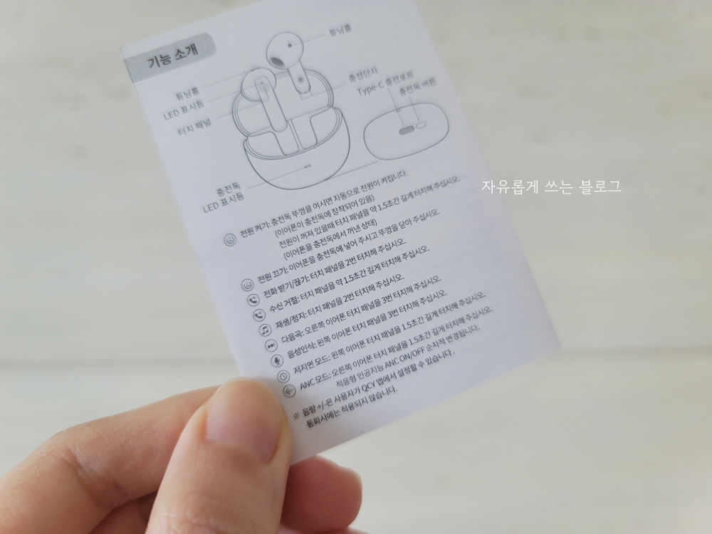 박스에는 이렇게 qcy 에일리버즈 프로 설명서와 함께 C타입 충전 케이블이 함께 들어 있었네요.