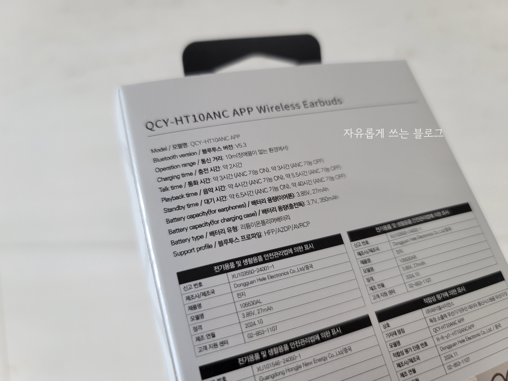 아래 사진 속 제품이 바로 qcy 에일리버즈 프로 제품입니다. 모델명은 QCY-HT10ANC 라고 적혀 있어요.