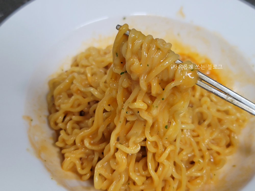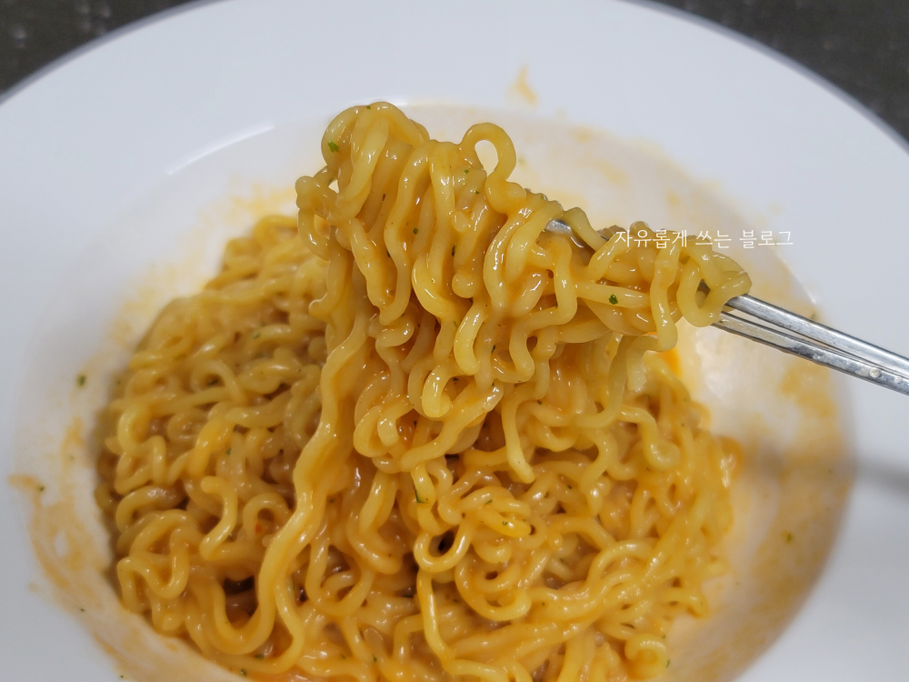 봉지라면이 치즈 향은 좀 더 잘 느껴지는 편이었지만 컵라면이 좀 더 꾸덕하면서 고소한 감칠맛이 잘 느껴졌던 것 같습니다.ㅎㅎ