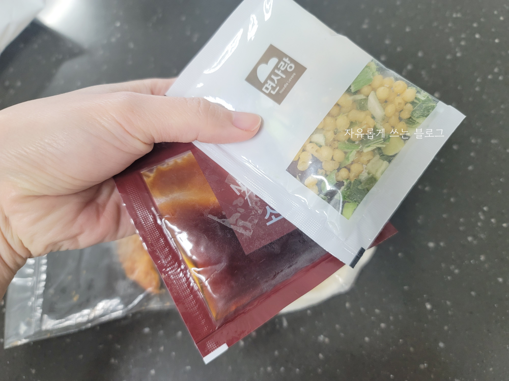 참고로 냉동상태에서 조리를 해 드셔야 면 식감을 제대로 즐길 수 있다고 해요. 어차피 해동하려면 번거롭기 때문에 냉동 상태로 조리해야 하는 게 오히려 개인적으로 맘에 들었습니다.ㅋㅋ