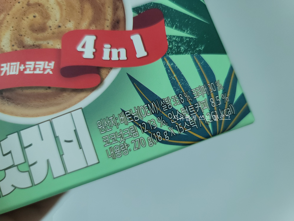 크리머, 설탕, 커피에 코코넛까지 더해진 4 in 1 커피라고 적혀 있네요.ㅎㅎ