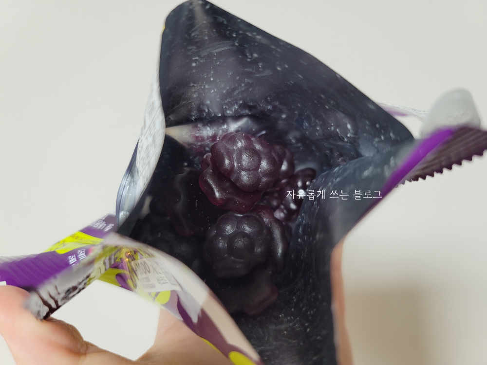 쫀득하게 씹는 식감도 좋고 달콤한 포도맛도 좋아서 먹다 보니 은근 스트레스가 풀리는 느낌이더라고요.ㅎㅎ