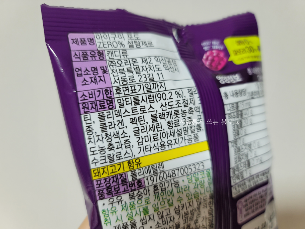 아래 사진 속 제품이 바로 마이구미 제로 포도맛 제품입니다.