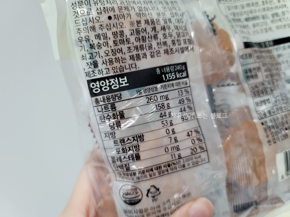 칼로리는 개별포장 기준이 아니라 전체 양 기준으로 되어 있었는데요.