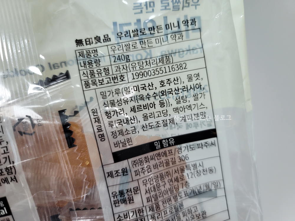 아래 사진 속 제품이 바로 무인양품에서 구매한 '우리쌀로 만든 미니약과' 입니다.