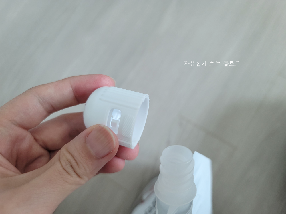 뚜껑은 요렇게 생겼는데요. 어린이가 쉽게 열지 못하도록 안전장치(?)가 되어 있습니다.