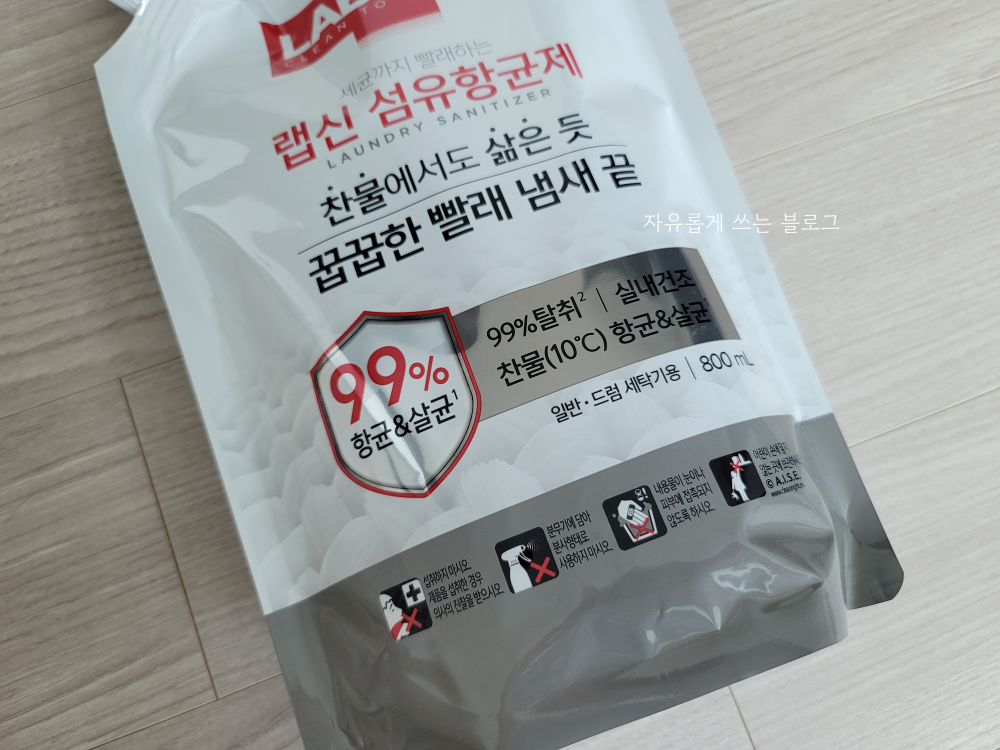 99% 항균 및 살균 효과가 있어서 찬물에 빨아도 삶은 듯 꿉꿉한 빨래 냄새를 없애 준다고 합니다.