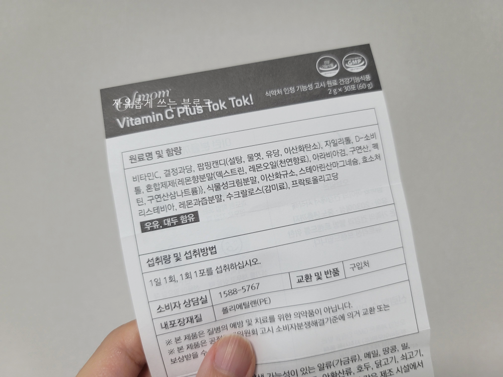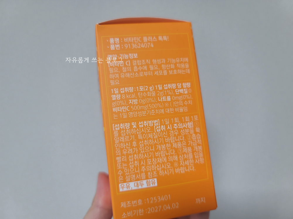 1포 당 비타민C는 500mg 들어 있습니다. 함량도 꽤 높은 편!