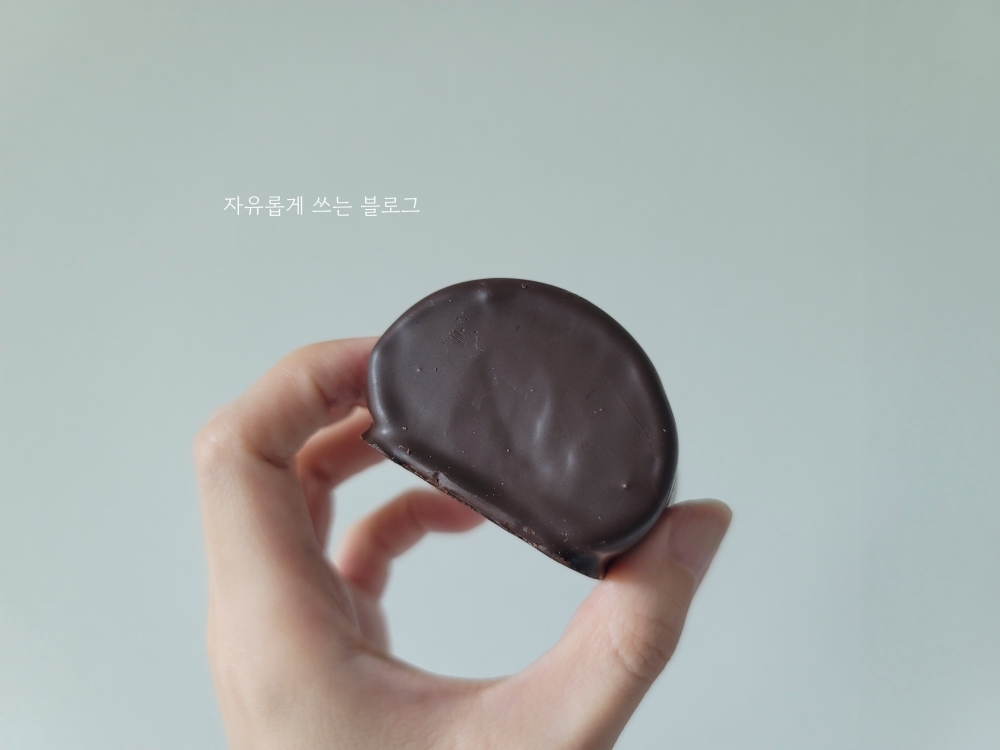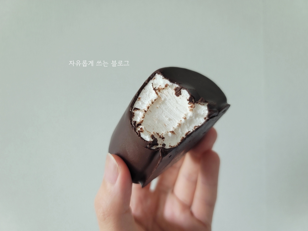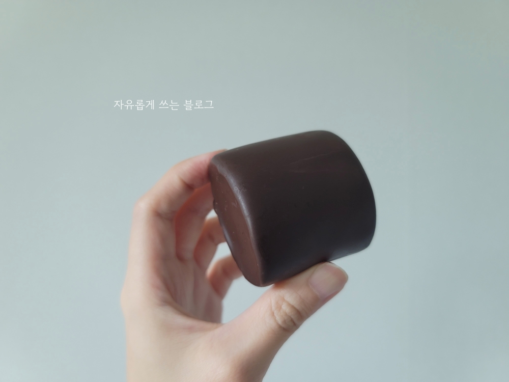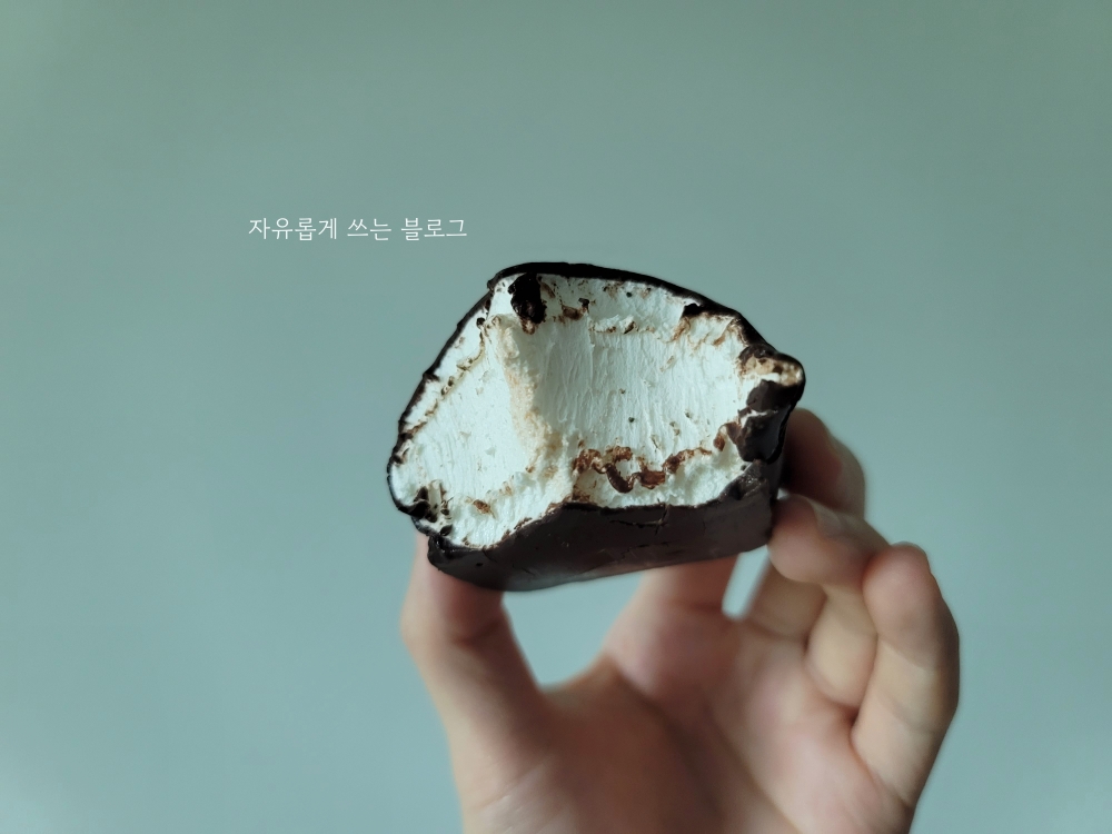 한 입 먹어보니 부드러운 초콜릿이 녹아내리면서 퐁실퐁실한 마시멜로 특유의 식감이 느껴집니다.