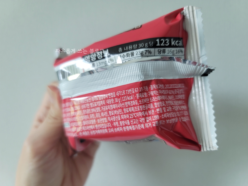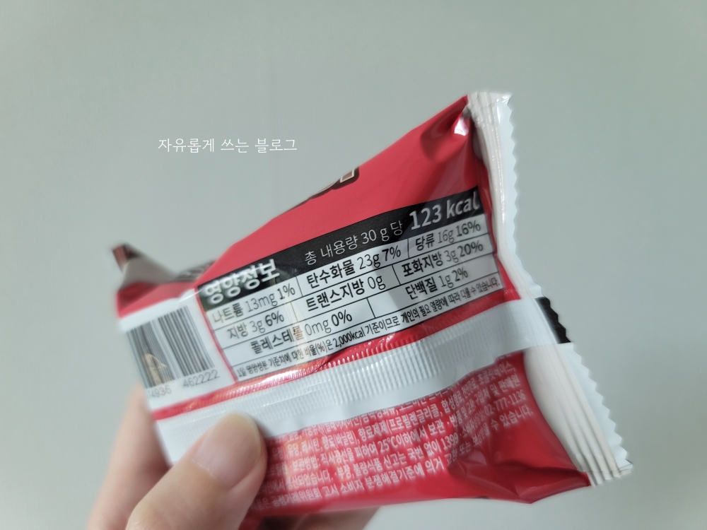 총 내용량은 30g이고 칼로리는 123kcal이에요. 양에 비해 칼로리가 높은 편..😭