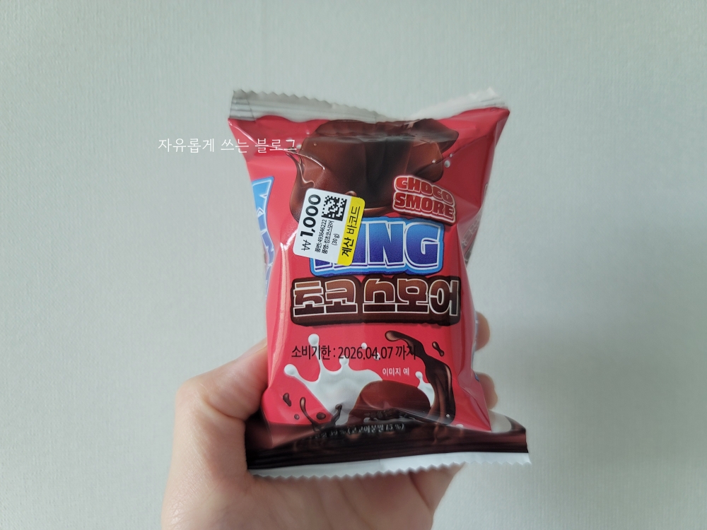 아래 사진 속 제품이 다이소에서 구매한 '킹 초코 스모어' 제품이에요. 가격은 1,000원이었습니다.