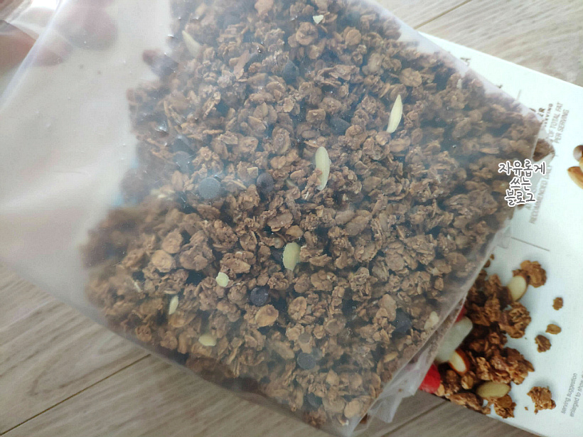 원재료로는 귀리, 케인슈거, 쌀, 해바라기유, 다크초콜릿 칩, 아몬드, 코코아 파우더, molasses, 바다소금 등등등 입니다.ㅋㅋ