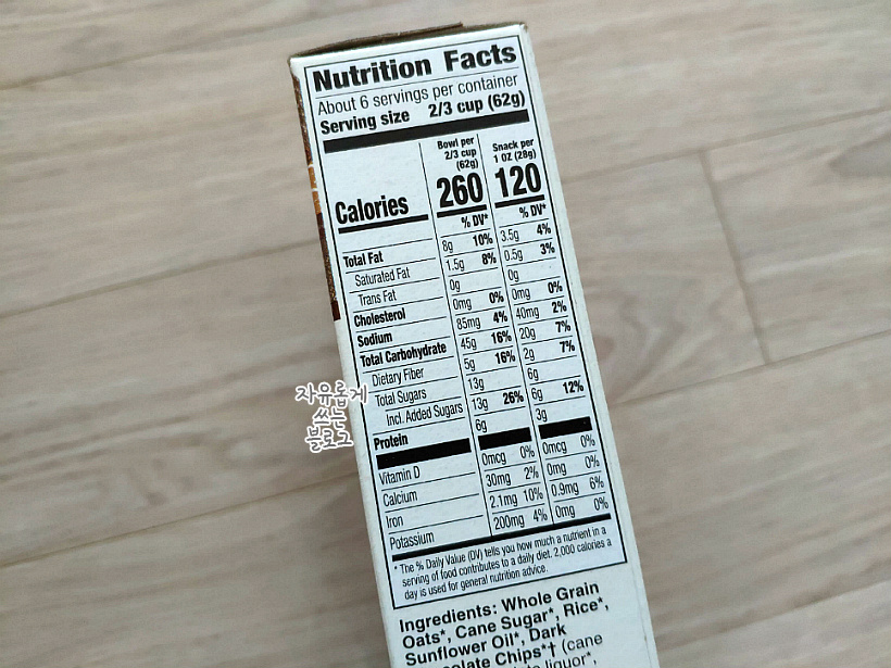 1회 분량은 2/3컵(62g)인데요, 1회 분량당 칼로리는 260kcal입니다.
