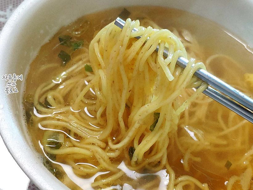 사진을 보면 아시겠지만 면이 꼬불꼬불한 스타일이 아니라 일반적인 컵라면 비주얼과는 조금 다릅니다.ㅎㅎ