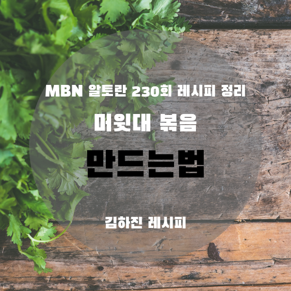 그럼 지금부터 알토란 김하진 선생님의 머윗대 볶음 만드는 방법 정리해보도록 하겠습니다. :)