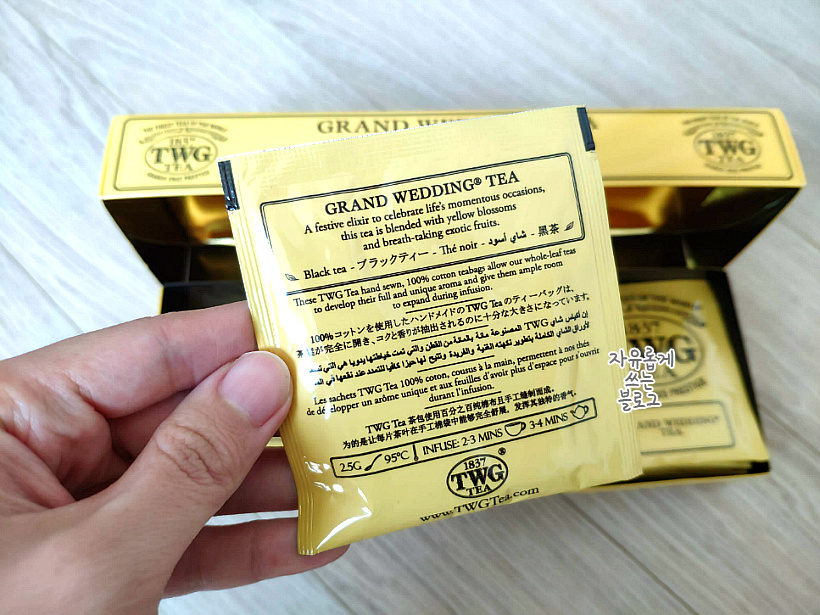 제가 구매한 twg grand wedding tea는 총 15티백이 들어있는 제품이었어요. :)