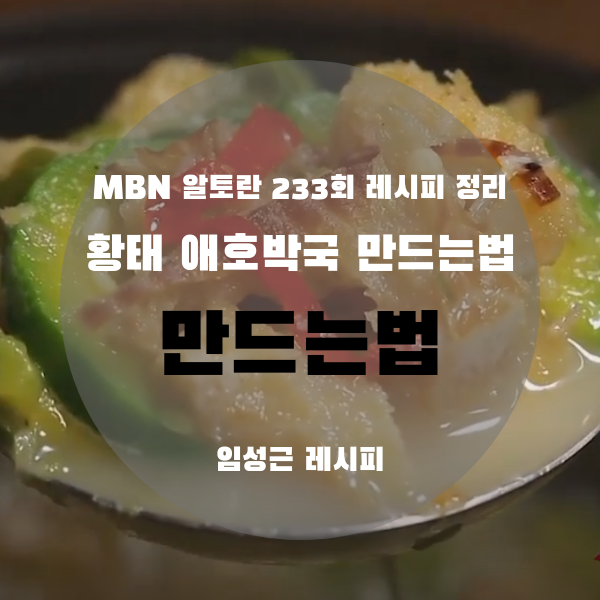이번 포스팅에서는 얼마전 알토란 233회 ‘약 되는 채소 <애호박>’코너에서 임성근 선생님이 알려주신,