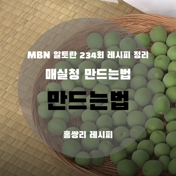 이번 포스팅에서는 지난번 알토란 234회 ‘홍쌍리 명인의 <매실 완전 정복>’코너에서 홍쌍리 명인님이 알려주신,