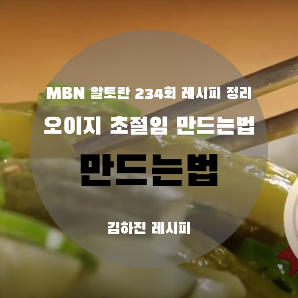 그럼 지금부터 알토란 김하진 선생님의 오이지 초절임 만드는법 정리해보도록 하겠습니다. :)