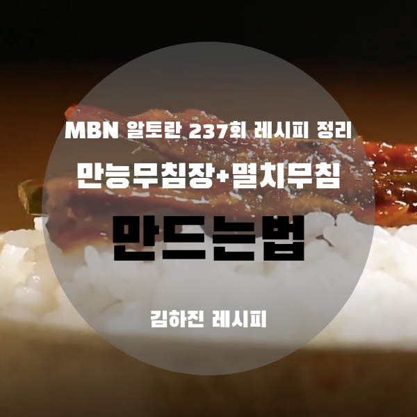 그럼 지금부터 알토란 김하진 선생님의 만능 무침장과 멸치무침 맛있게 만드는법 정리해보도록 하겠습니다.