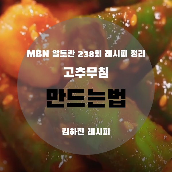 그럼 지금부터 알토란 김하진 선생님의 풋고추 요리, 고추무침 만드는법 정리해보도록 하겠습니다.