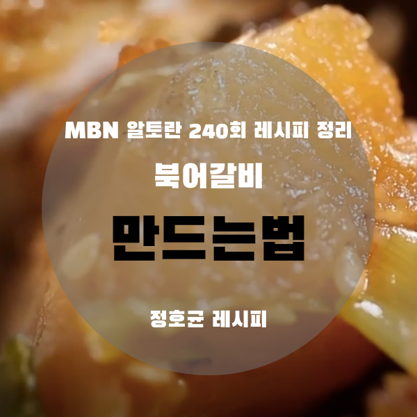 이번 포스팅에서는 7월 21일 알토란 240회 ‘정호균의 <보양 밥상>’코너에서 정호균 셰프님이 알려주셨던 북어 요리인,