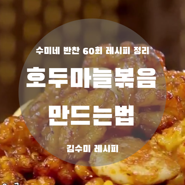 그럼 지금부터 수미네 반찬 김수미 선생님의 호두 마늘볶음 만드는법 정리해보도록 하겠습니다. :)