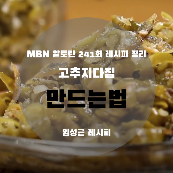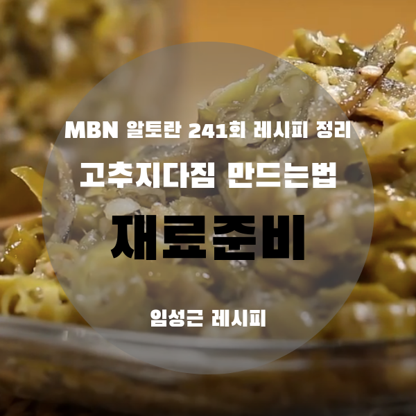 그럼 지금부터 알토란 임성근 선생님의 고추지다짐 만드는법 정리해보도록 하겠습니다.^^