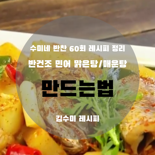 그럼 지금부터 수미네 반찬 김수미 선생님의 반건조 민어조림 만드는법 정리해 보도록 하겠습니다.