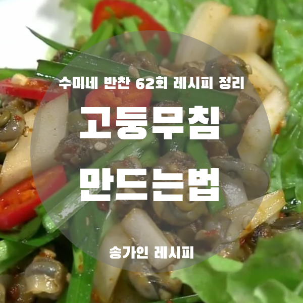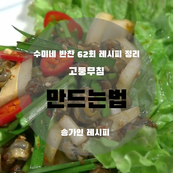 그럼 지금부터 수미네 반찬 송가인 님의 고둥무침 만드는법 정리해보도록 하겠습니다.