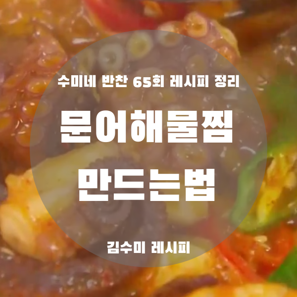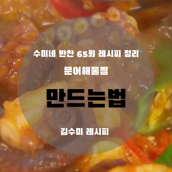 그럼 지금부터 수미네 반찬 김수미 선생님의 문어해물찜 황금레시피 정리해보도록 하겠습니다.