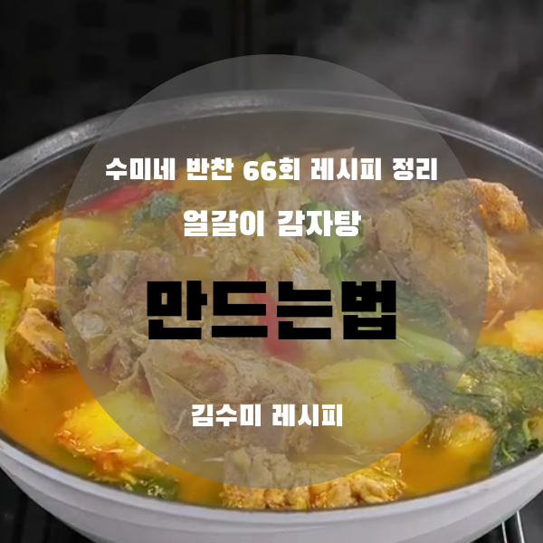 그럼 지금부터 수미네 반찬 김수미 선생님의 얼갈이 감자탕 황금레시피 정리해보도록 하겠습니다.