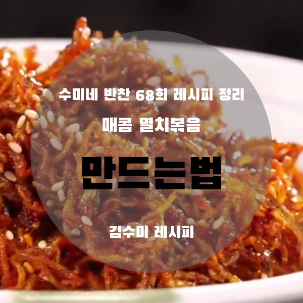 그럼 지금부터 수미네 반찬 김수미 선생님의 매콤 멸치볶음 황금레시피 정리해보도록 하겠습니다.