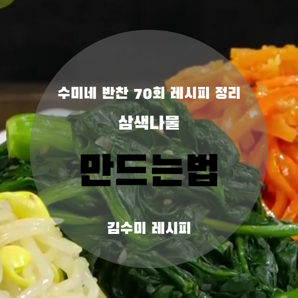 그럼 지금부터 수미네 반찬 김수미 선생님의 삼색나물 황금레시피 정리해보도록 하겠습니다.