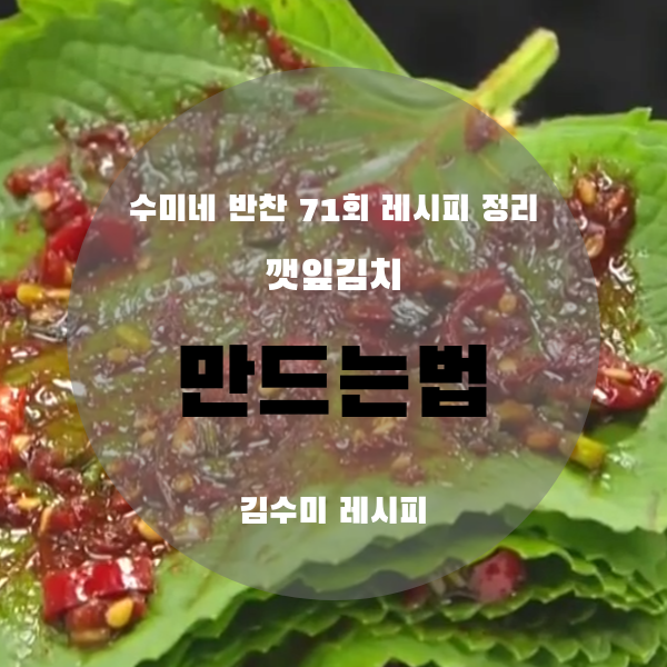 [수미네 반찬 김수미 깻잎김치 맛있게 담그는법 - 레시피]