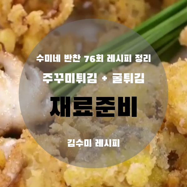 그럼 지금부터 수미네 반찬 김수미 선생님의 주꾸미 튀김 + 굴튀김 만드는 법 정리해보도록 하겠습니다. :)