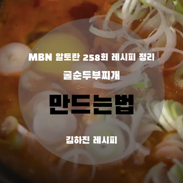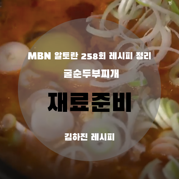 그럼 지금부터 알토란 김하진 선생님의 굴 순두부찌개 황금레시피 정리해보도록 하겠습니다.
