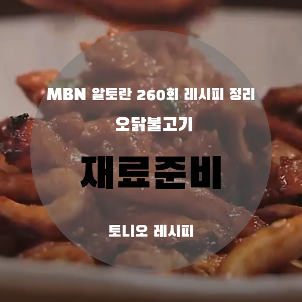 그럼 지금부터 알토란 토니오 셰프님의 오닭불고기 만드는 방법 정리해보도록 하겠습니다.^^