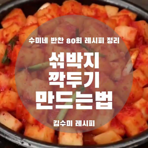 여러분도 수미네 반찬 김수미 선생님의 섞박지 만드는 법과 깍두기 황금레시피 참고하셔서