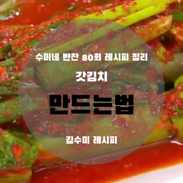 그럼 지금부터 수미네 반찬 김수미 선생님의 갓 물김치 담그는법과 갓김치 담는법 정리해보도록 하겠습니다. :)