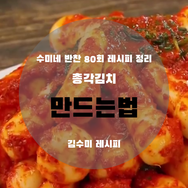 그럼 지금부터 수미네 반찬 김수미 선생님의 총각김치 맛있게 담는법 정리해보도록 하겠습니다.